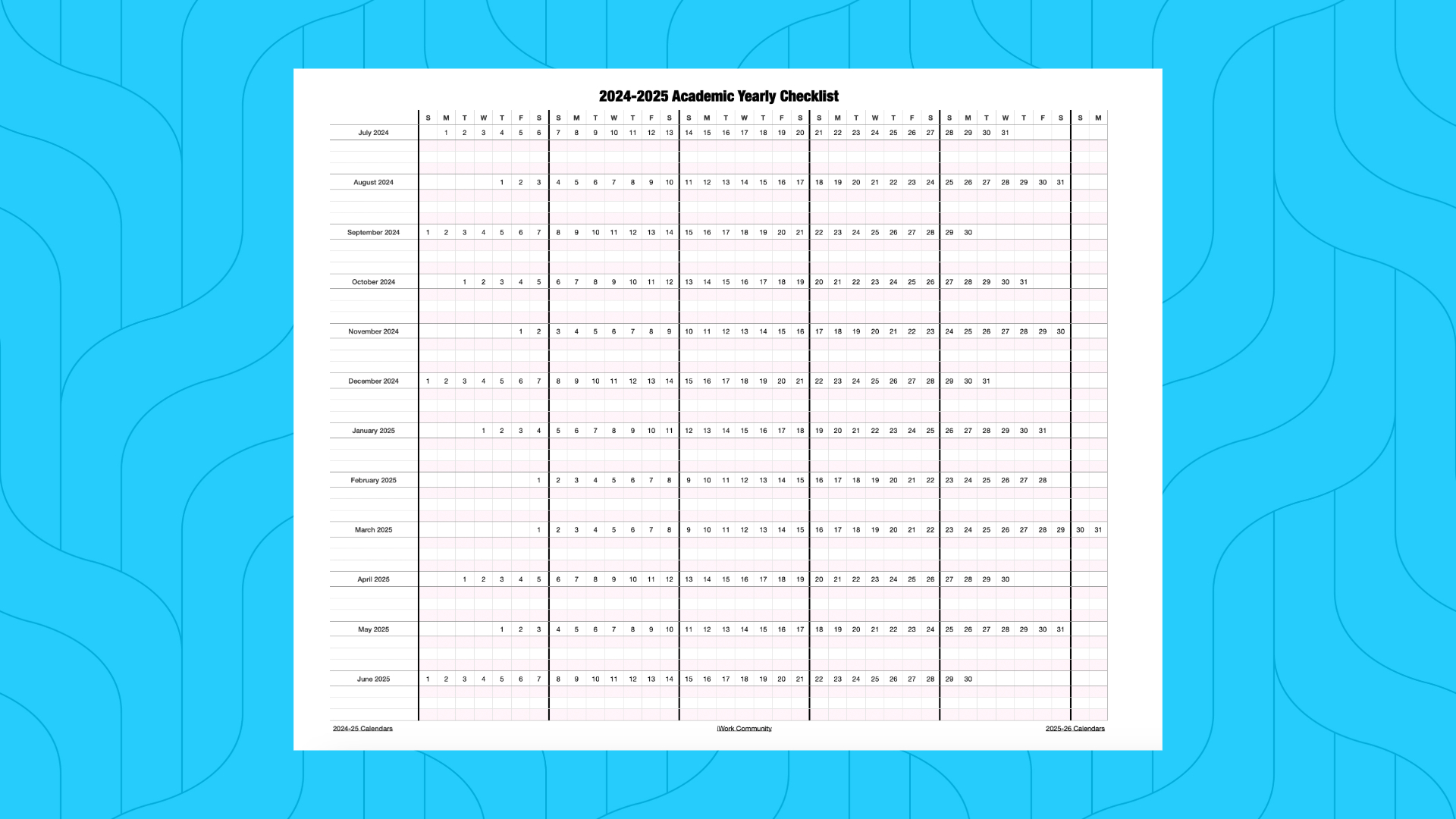 2024-2025 School Yearly Checklist Calendar Template for Numbers