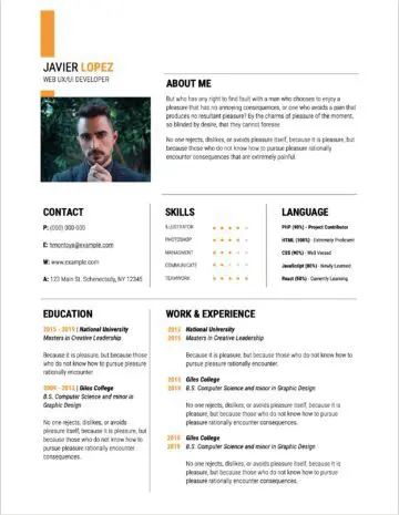The Focused Resume Template Orange for Pages is a modern resume template that's designed to show you off as well as your attention to design.